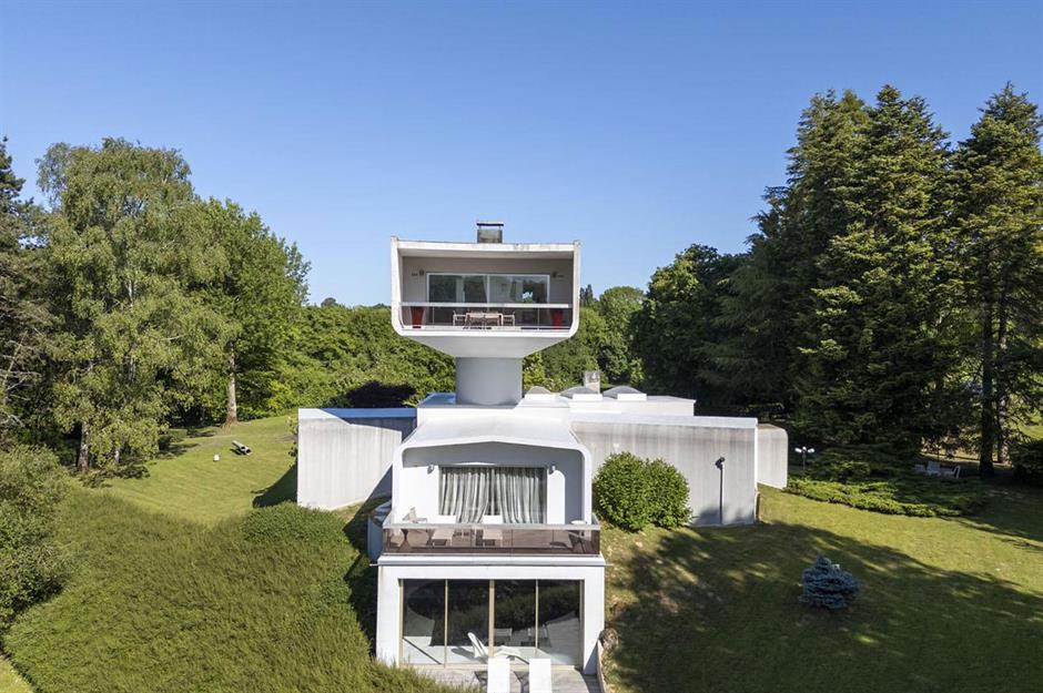 The futuristic mansion, made up of rounded rooms with rotating floors, took fourteen years to build and was designed by Hungarian architect Antti Lovag.