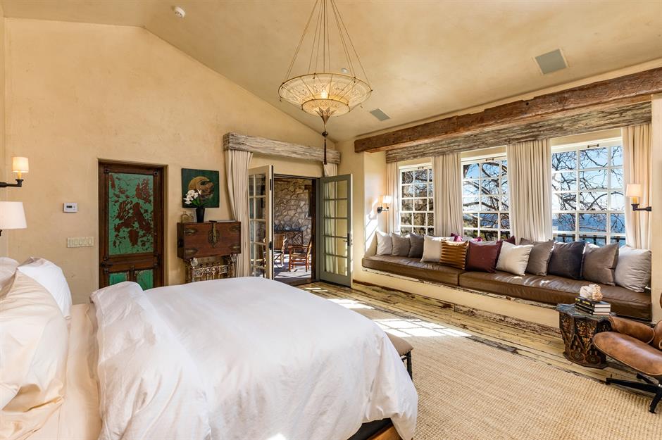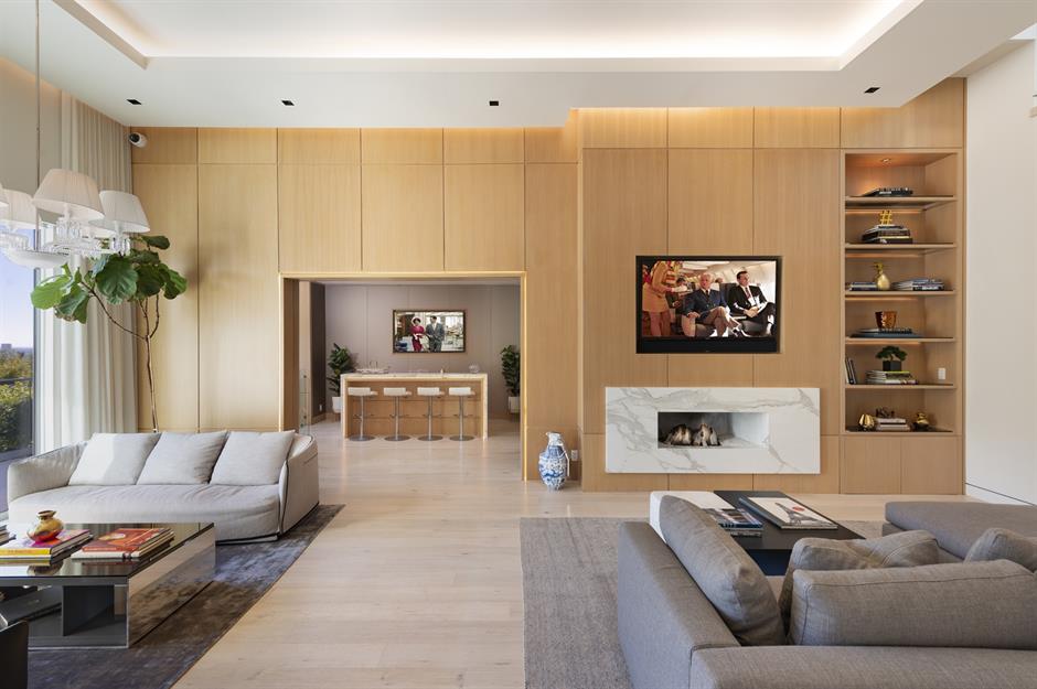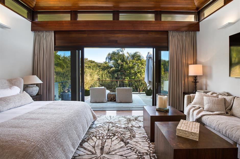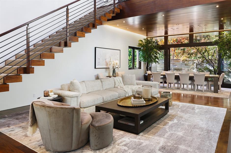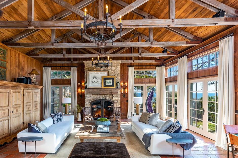 With seven bedrooms and 10 bathrooms, the custom-built house effortlessly blends Californian modernism with Zen influences. It boasts a 35-foot-high (10.7m) entrance hall with a statement mahogany ceiling and an open-plan living and dining room, featuring a massive stone fireplace and steps that lead down to a billiards lounge and wet bar.