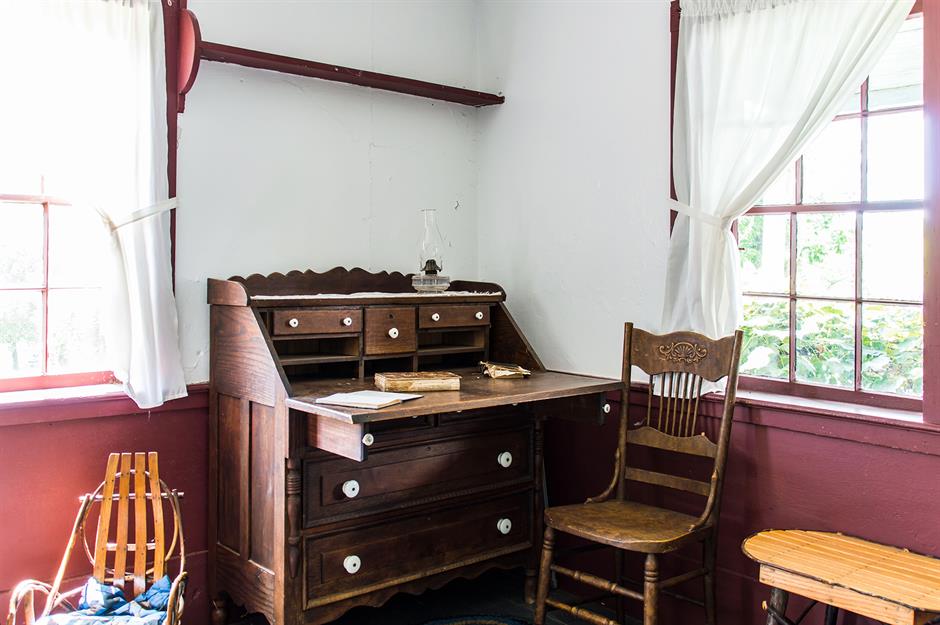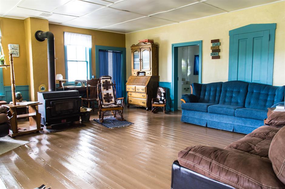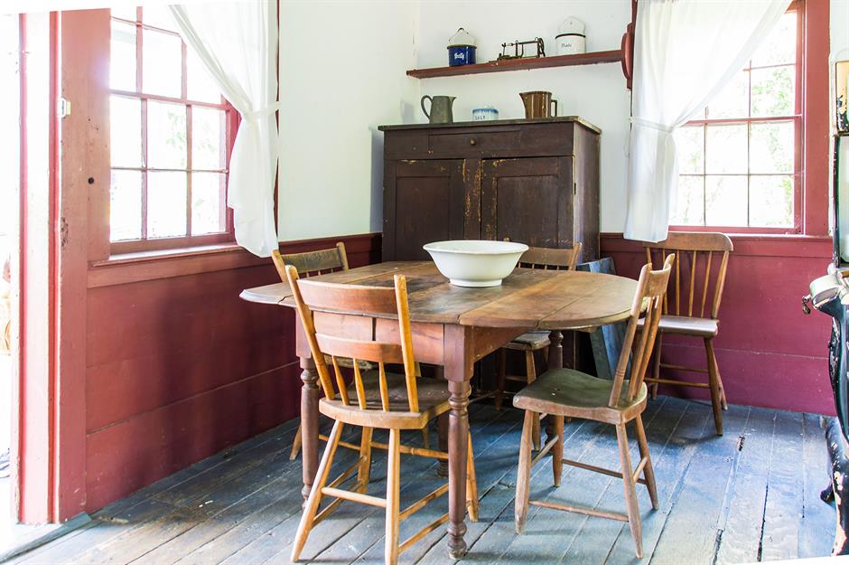 Hardwood floors throughout are also designed for ease of mopping without the convenience of a vacuum. Most appliances in the home run on gas, while an icebox is used instead of a modern freezer.