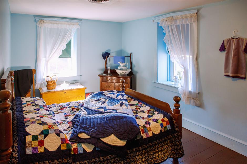 Colourful and intricate, these quilts represent a strong source of income for Amish families, but are also made for use in Amish homes, like the one pictured here.