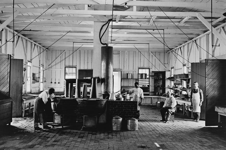 Meals were prepared using coal-fired cast-iron ranges, with large copper pans and iron cookware.