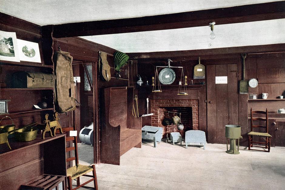 1900: colonial-style hearth in a New England home