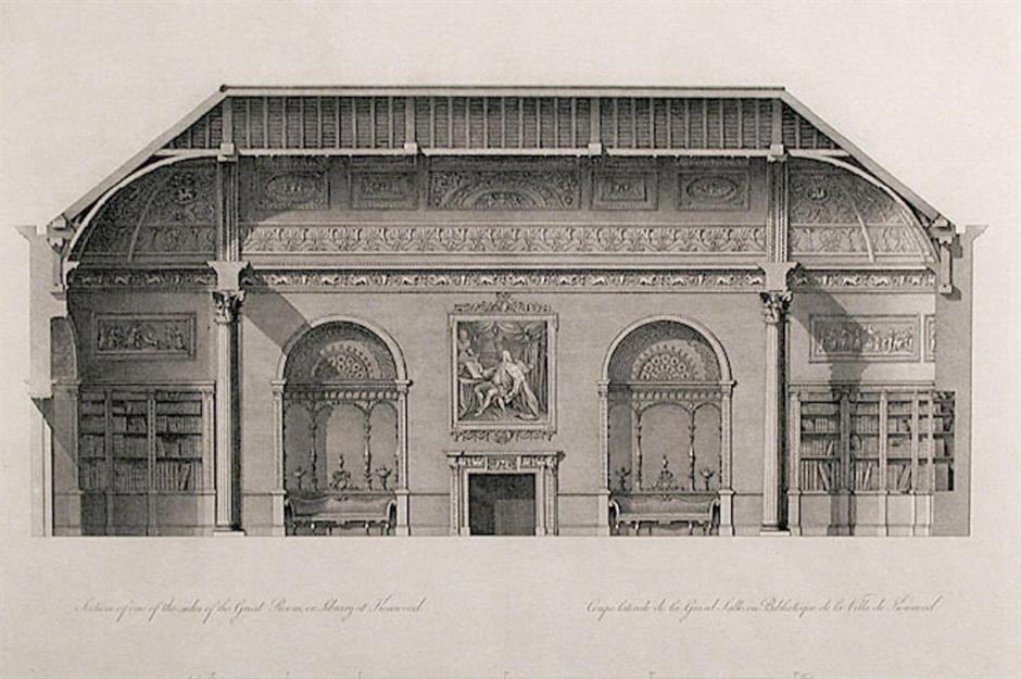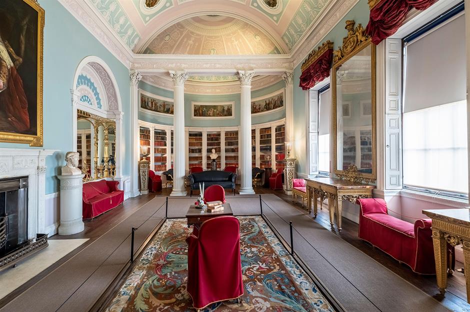 Young though he was, David already had his own ideas to improve the estate, and hired architect William Atkinson to make several alterations, including the addition of second-floor rooms to the service wing and the installation of bookcases in the mirrored niches in the famous library, pictured here.