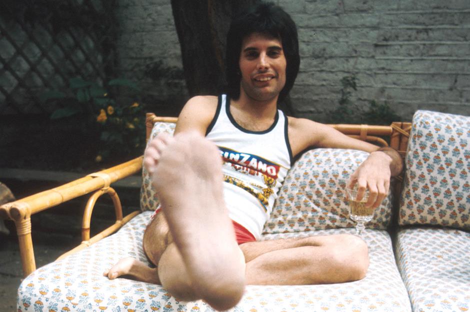 Freddie Mercury in the garden of his Holland Park home: 1975