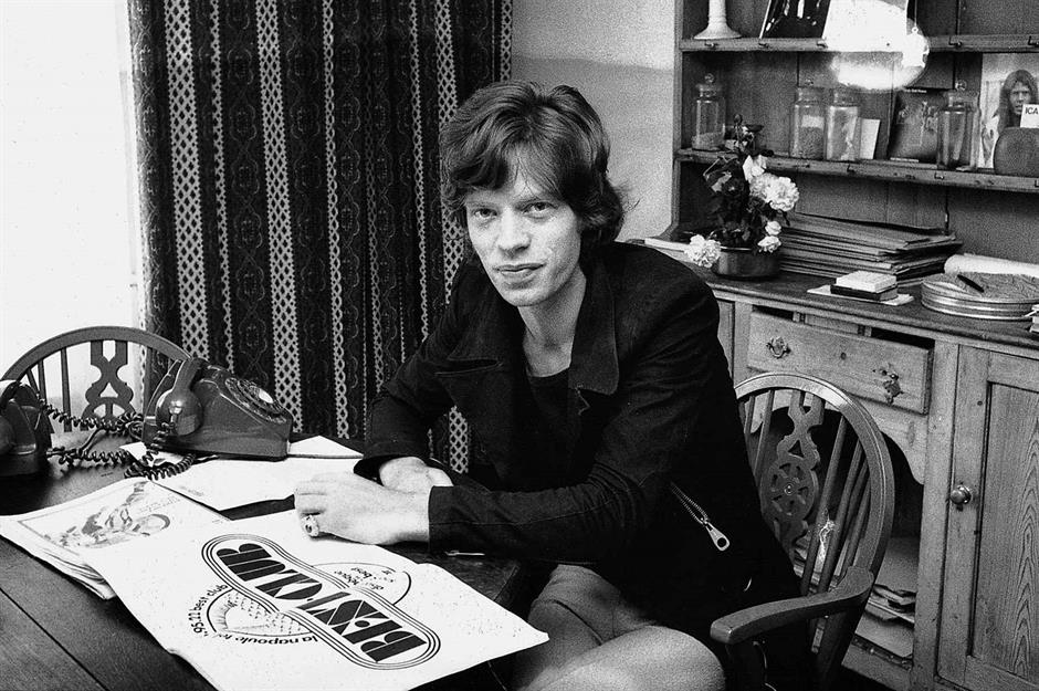 Taken less than three months after the death of founding member Brian Jones, the candid shot shows Jagger, unwell with tonsillitis, seated at a table with papers and a telephone, revealing a quieter side of the famously restless frontman.