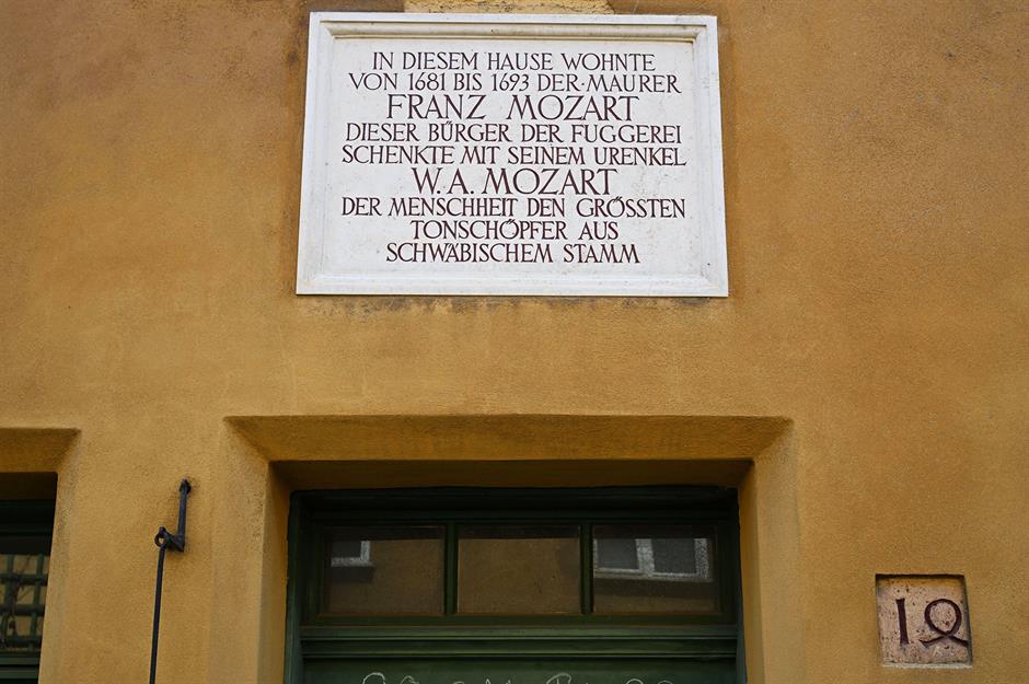 Over the centuries, the town has offered sanctuary to prominent names. This plaque marks the home of Franz Mozart, the great-grandfather of the Austrian composer Wolfgang Amadeus Mozart. Franz, who worked as a bricklayer, moved into the upstairs apartment of house 14 in 1681 with his family. He lived in the Fuggerei for 13 years before his death in 1694.