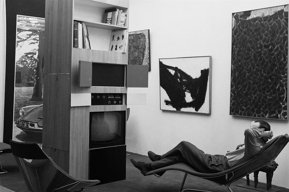 Unveiled at the 1958 Ideal Home Exhibition in London, the so-called bachelor’s column was an ambitious piece of furniture that squeezed a cocktail cabinet, television, bookshelf, writing desk, radio, and lighting controls into a nine-foot-high (2.7m) tower.