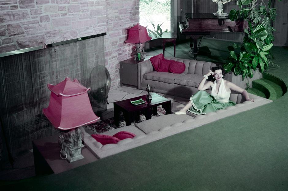 The Miller House in Columbus, Indiana, is often cited as an early example, but the trend soon spread to fashionable mid-century homes across the US, where they would often appear alongside bold stone fireplaces, wood panelling, and brightly coloured textiles.