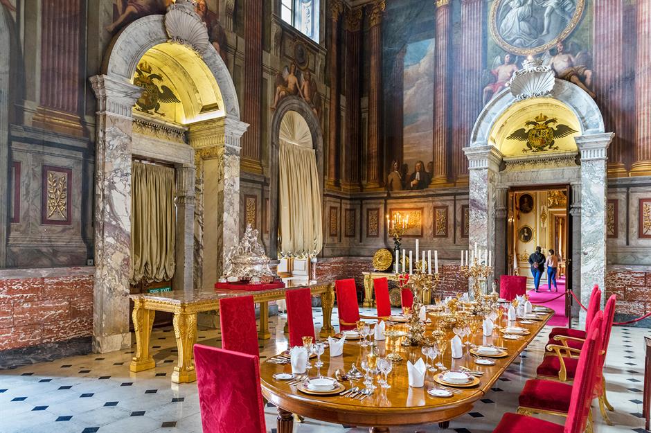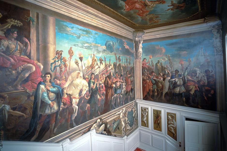 He also hired celebrated Venetian artist Giovanni Antonio Pellegrini to decorate the castle’s interiors with many spectacular frescoes, including the one on the walls and ceilings of the main staircase, pictured here.
