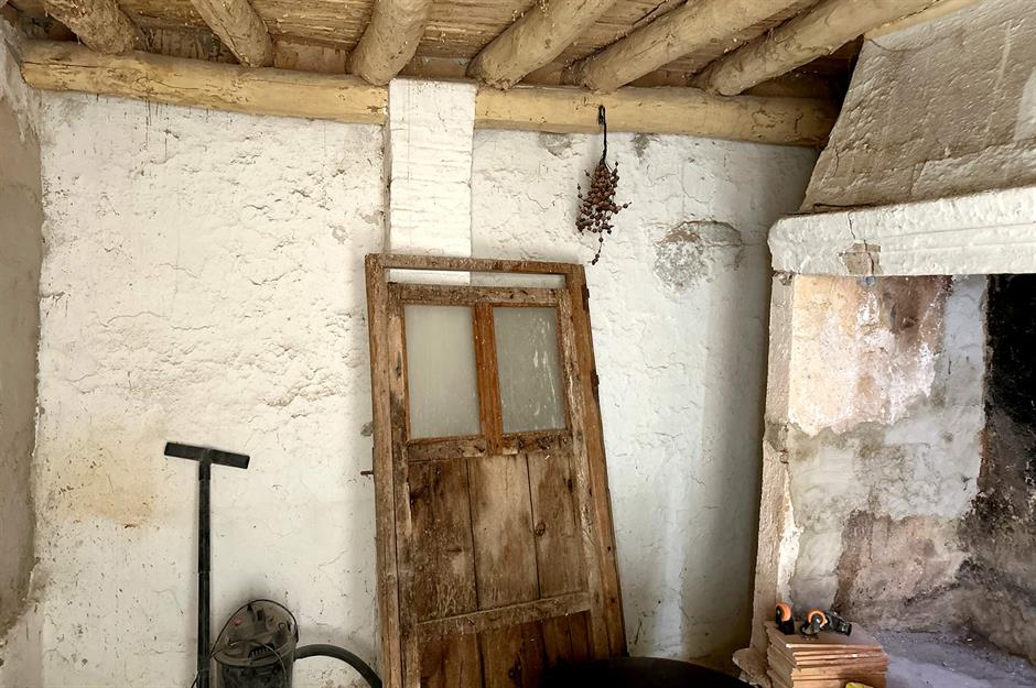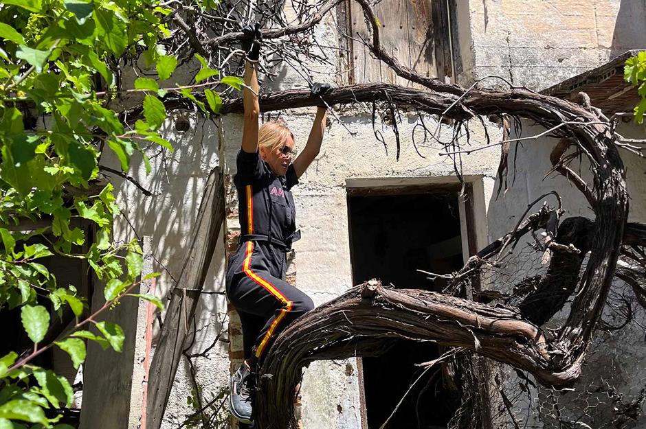 It was actually Amanda who set her heart on restoring this run-down three-bed house. Pictured here giving her all to stop the progress of the property’s greedy vines, she wanted to turn it into a boutique B&B that would help bring tourists back to the region, in turn creating jobs for local people.