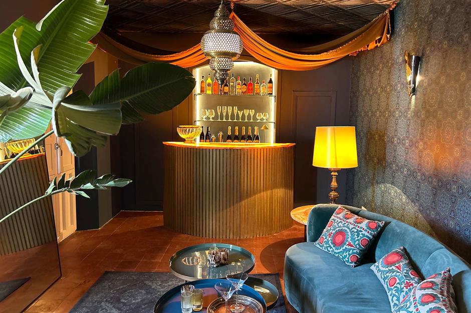 The bar/games room is probably one of the biggest changes in terms of room use. Once a rather sad-looking bedroom, today it's got a private members' club feel to it, not so much Andalusian as London in its styling.