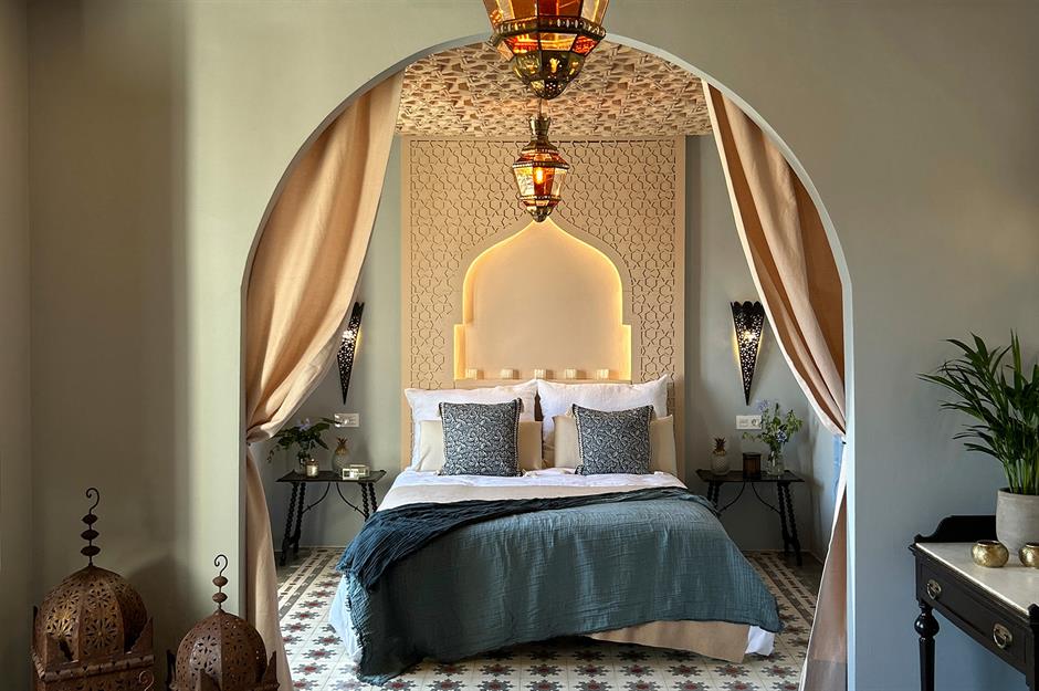 The master bedroom, which is inspired by the architectural wonder that is the Alhambra Palace, 31 miles (50km) away, comes with a striking archway, Moroccan-style handcrafted ceiling, original tiled floor, and Juliet balcony, and is just about as romantic a room as you can imagine.