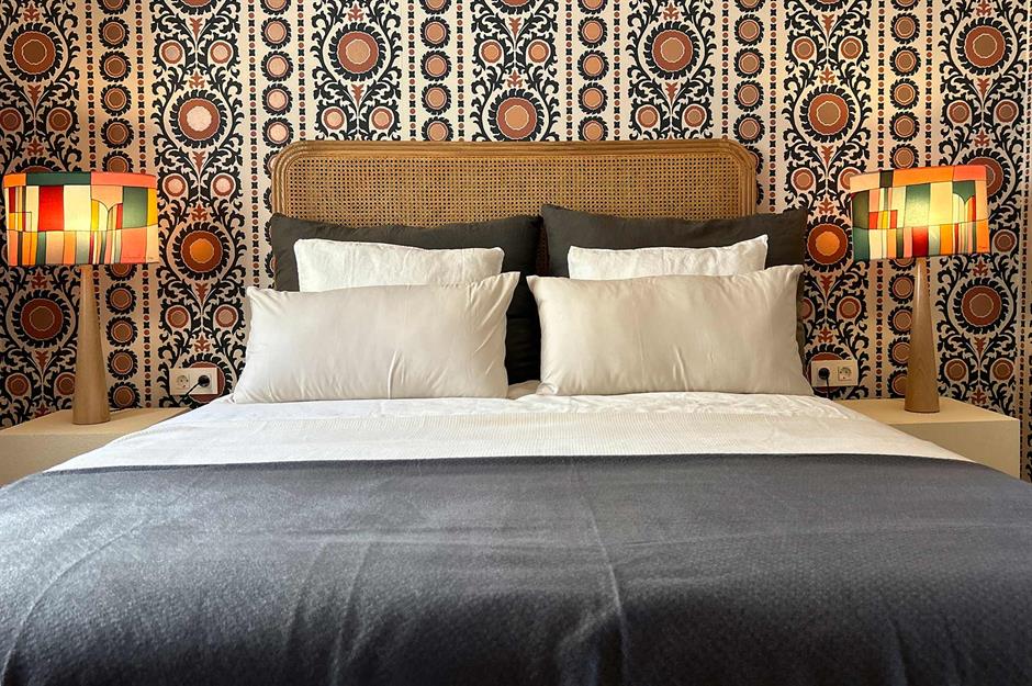 The first-floor 'Gold' bedroom, meanwhile, is cosier but full of charm, with gorgeous printed wallpaper, hand-painted lampshades, and a king-sized bed.