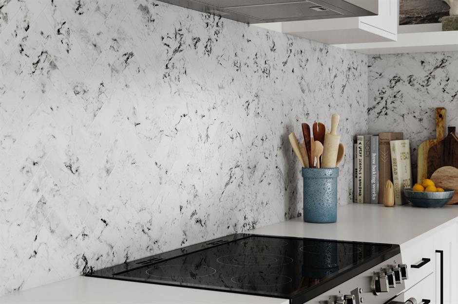 Featured stick-on splashback available from Bushboard.