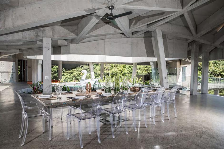 The property was designed by Charles Wright Architects and is formed from six concrete pods, which all jut out like wings. Not just an aesthetic choice, the cantilevered structure was chosen to help the home withstand the powerful cyclones that this region of Australia is known for.