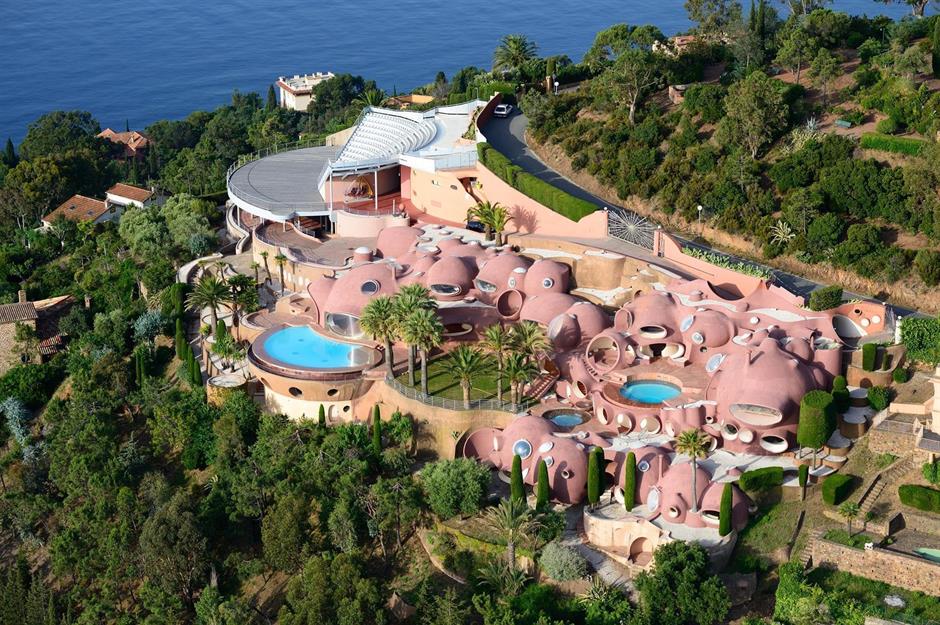 It was designed by trailblazing Hungarian architect, Antti Lovag, who was inspired by the cave dwellings of prehistoric humans. Formed from bubble-like mounds of different sizes, the property is interspersed with circular roof terraces and outdoor pools.