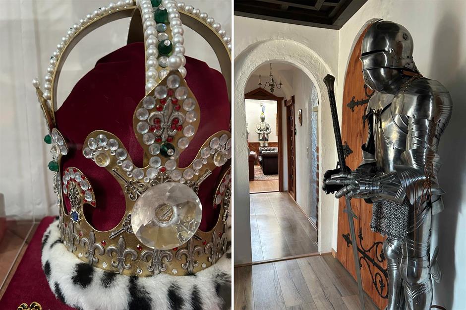 Peter built the huge 6.5 metre (21.3ft) dining table in the knights' hall himself, after failing to find anything to his tastes. "Every castle I visited had such tables, but I found that everything for sale was too small, so I set to work," he says.