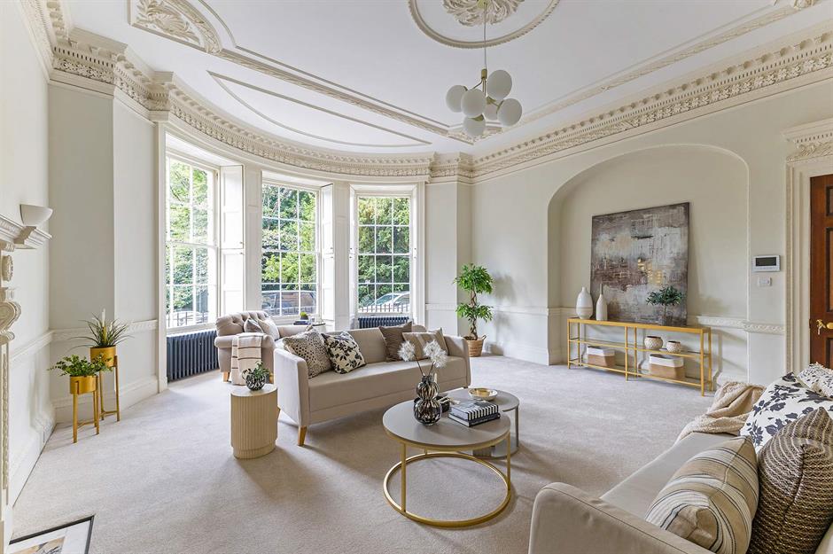 With a beautiful bay-fronted reception room for receiving guests, plus other period features, including ornate cornicing, a marble fireplace, and original shutter windows, it's a perfect pad for living out your Bridgerton-inspired Regency fantasies.
