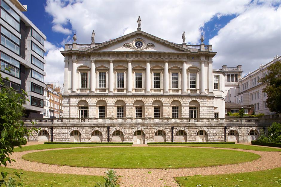 This opulent room features a coved ceiling decorated with coffering from Rome’s Basilica of Maxentius, while Roman gods are depicted in plaster roundels that look like bronze medallions. Free guided tours of Spencer House are available on Sundays.