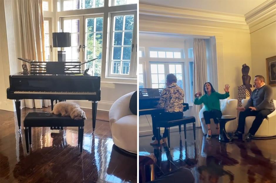 The sitting room is dominated by this baby grand piano. Styled with comfy seating and classic detailing, it’s a relaxed but refined space where the Oscar-winner entertains friends, often posting videos of herself enjoying a sing-along.