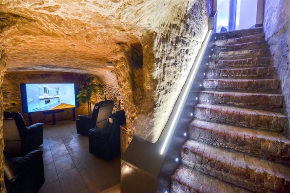 At the time of its sale in 2020, the property's cave room was being used as a movie theatre and came with a flat screen TV, reclining leather armchairs, and a mechanical ventilation and heat-recovery system. The home (cave and all) was sold for around £325,000.