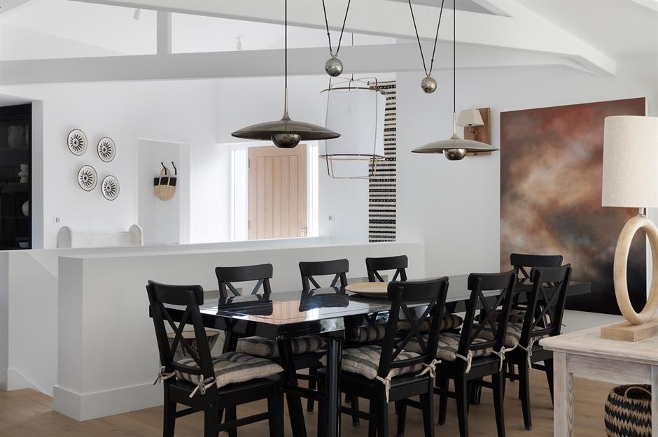 Pippa says that good quality but interesting lighting is also important. Plus, with white interiors, you can either go with small, well-placed lamps or statement pendants, like in the dining area here.