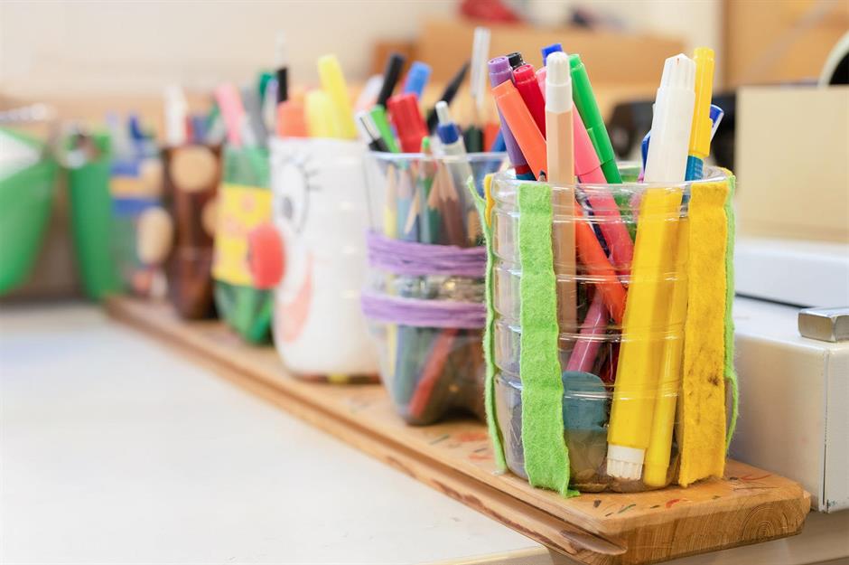 This is a great recycling idea for storing lots of colouring pens and pencils together. Carefully cut a plastic drinks bottle in half and decorate. Perfect for storing crayons and similar useful items, the easy-to-access plastic pots mean you can see the contents easily.