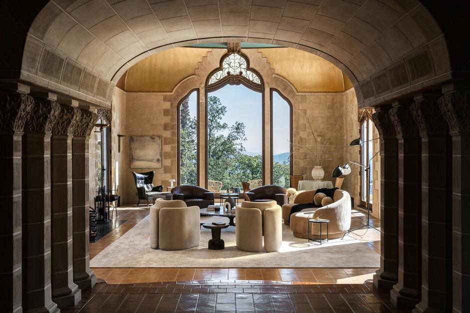 Available to rent on Airbnb, the castle is ideal for seven guests. There are six bedrooms and four bathrooms, as well as sprawling living spaces with soaring ceilings.